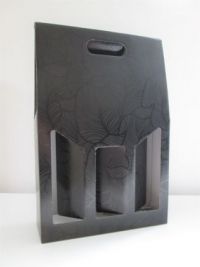Draagdoos 3 flessen Foglie Zwart (P/20)