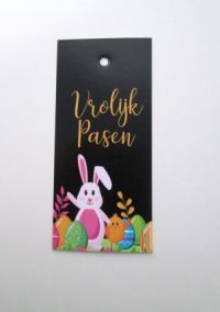 Pak Wenskaartje Zwart/Geel 4,5x10cm Vrolijk Pasen Haas
