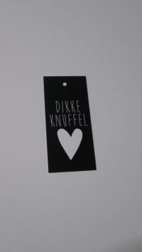 Wenskaartje 4,5x10cm zwart /wit Dikke knuffel(25st.)