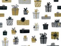 Dessin wit kadopapier met print zwart/goud/zilver.